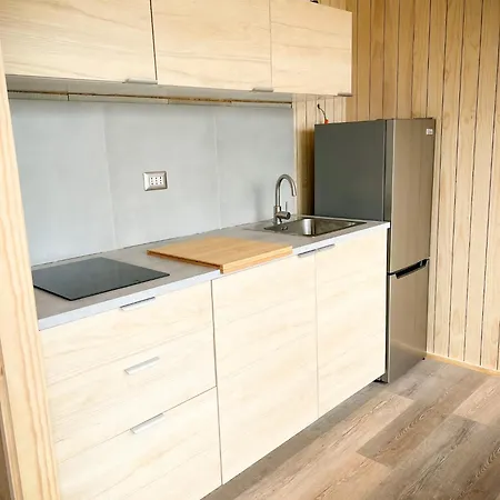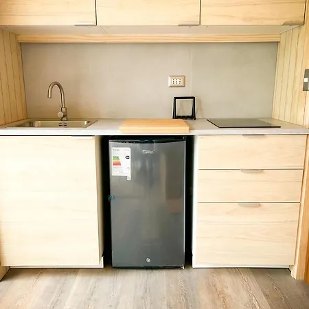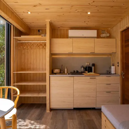 Outscape L Cabanas A Orilla Del Lago Puyehue offers a fully equipped kitchen featuring a fridge, a stove top, and kitchenware. - ❓